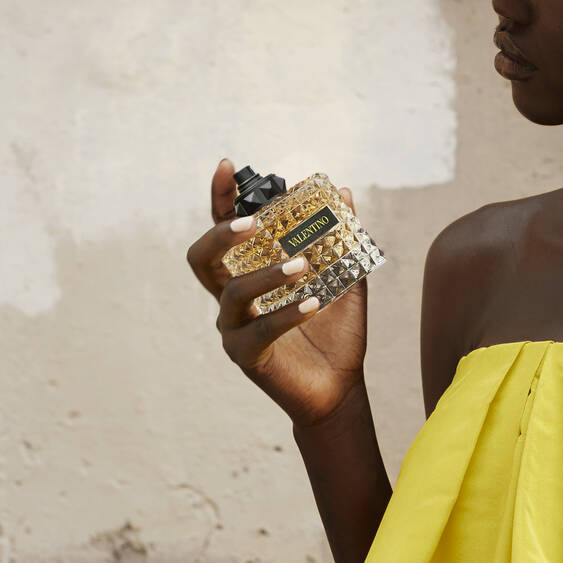 Born in Roma Donna Yellow Dream is a couture floral lift composed of a thousand rose petals and peonies. Blended with white musks and a contrasting clean accord, the floral heart fuses with a lingering powdery softness to create a fresh new feminine addiction.