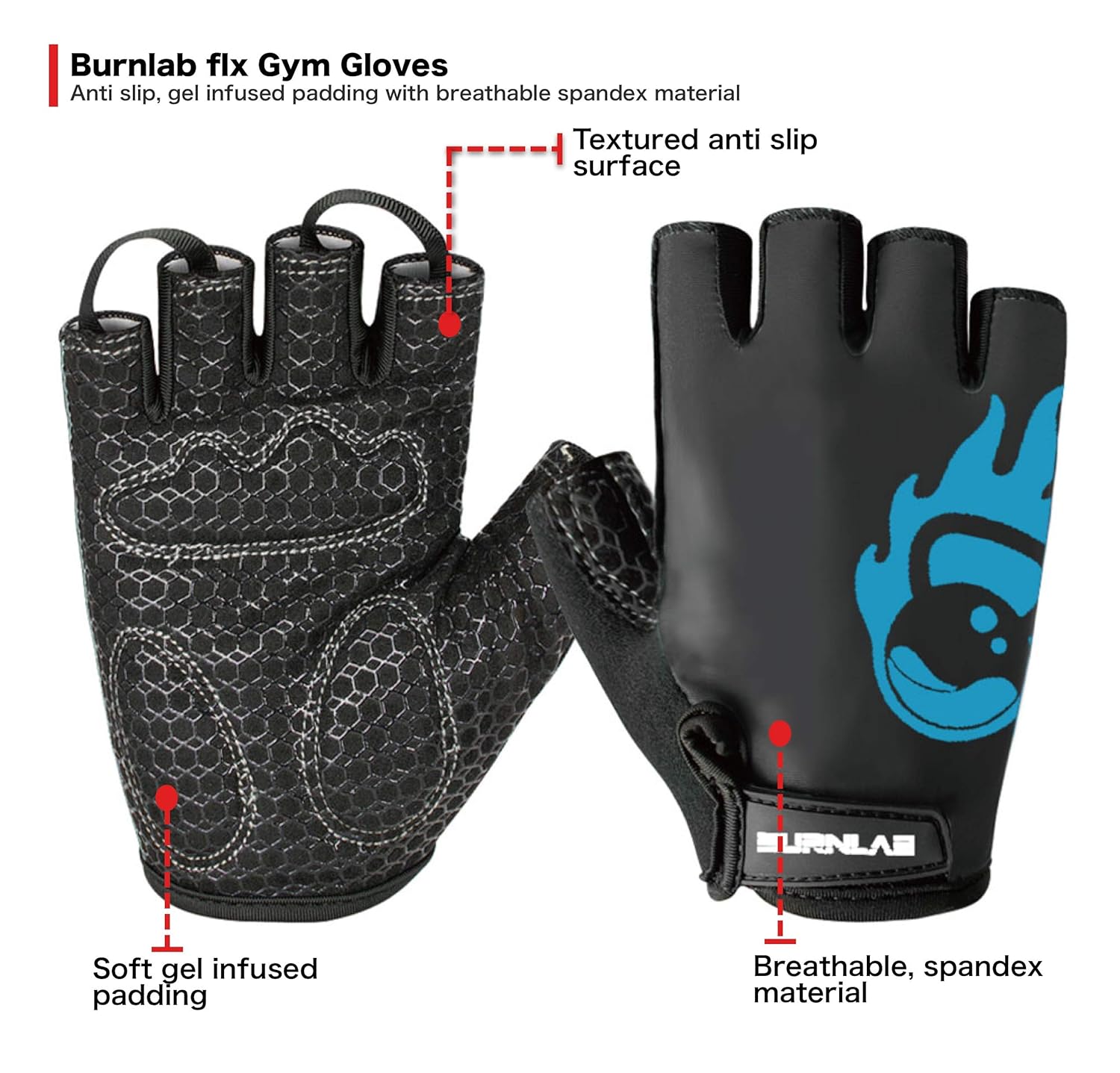 Burnlab Flex Gym Gloves for Men and Women (Black & Blue XL)