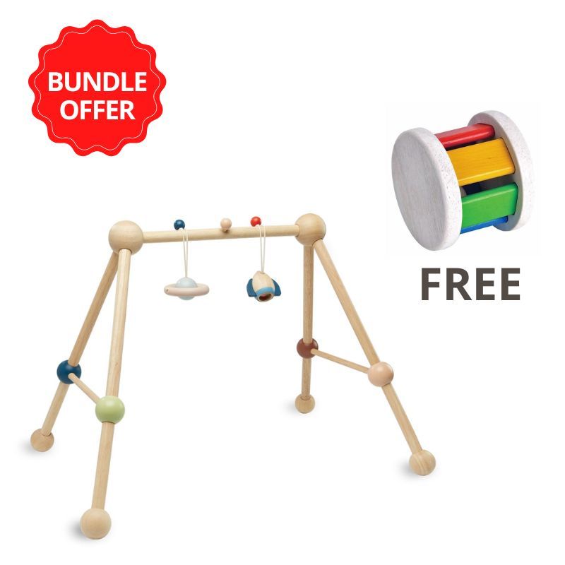 PLAY GYM: Give your baby a workout with this activity gym that includes 2 suspended toys which help stimulate your child’s curiosity. Items can be detached for later stages of development. The structure is designed with four legs to prevent rocking and to optimize child safety