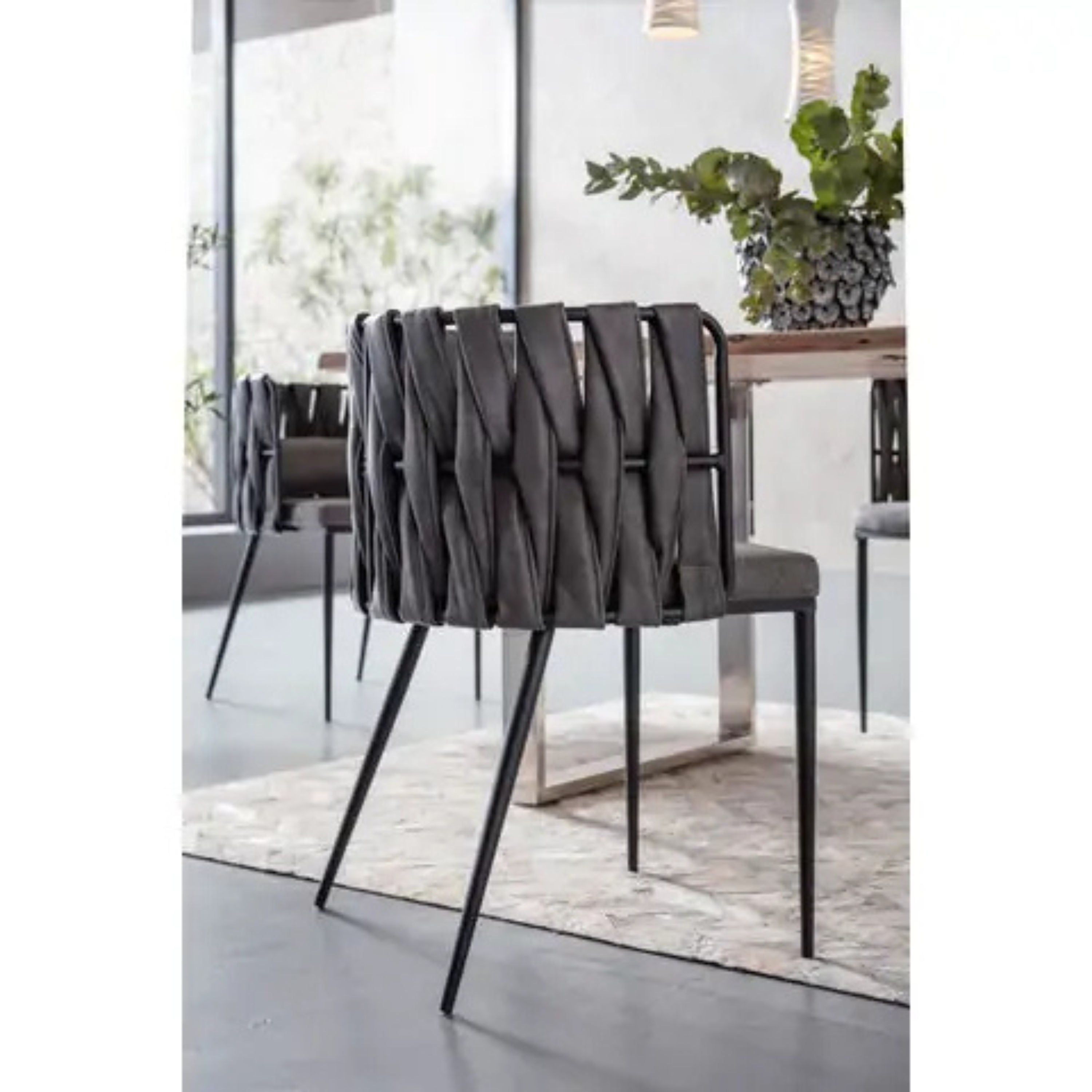 Comfortable seating is must in any dining room. With its small cushion, belted round backrest and woven seat, the Cheerio armchair will be favorite around any table. Painted steel frame ensures stability. Also available as barstool. Its most attractive features are comfortable seating, well thought-through details and dynamic lines. The semi-round, delicately woven backrest is especially attractive.