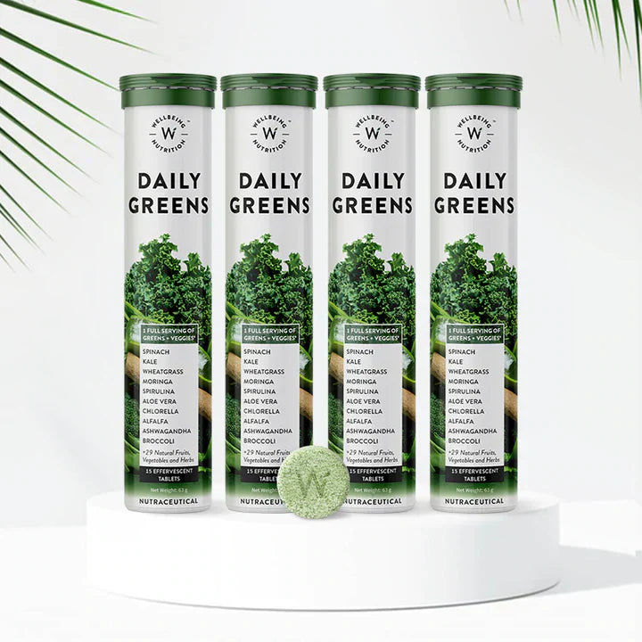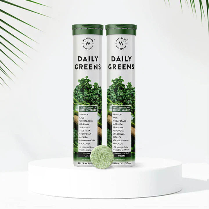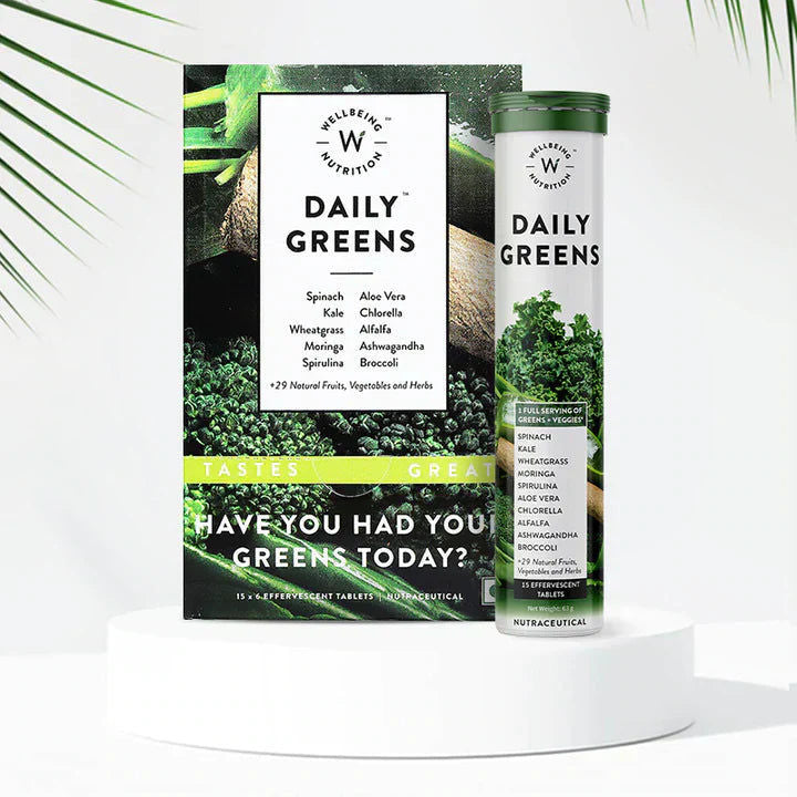 A powerful blend of farm-fresh superfoods, the Wellbeing Nutrition Daily Greens Tablet is designed to meet your daily micronutrient needs and energize you. Wellbeing Nutrition Daily Greens tablet is an innovative tablet that provides 100% of your daily vitamins and minerals in every delicious serving.