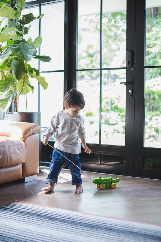 Suitable for crawlers and early walkers. Encourages active imaginations while developing balance and bilateral coordination.