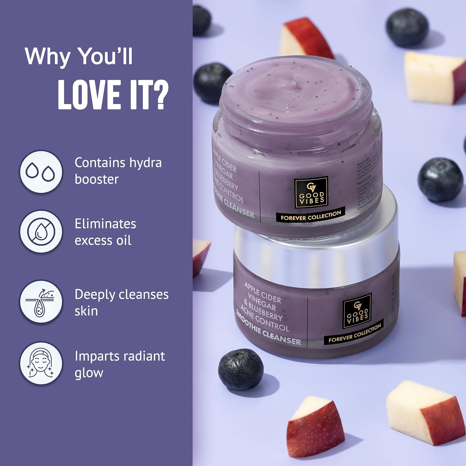 Good Vibes Apple Cider Vinegar and Blueberry Anti Acne Smoothie Cleanser 45g