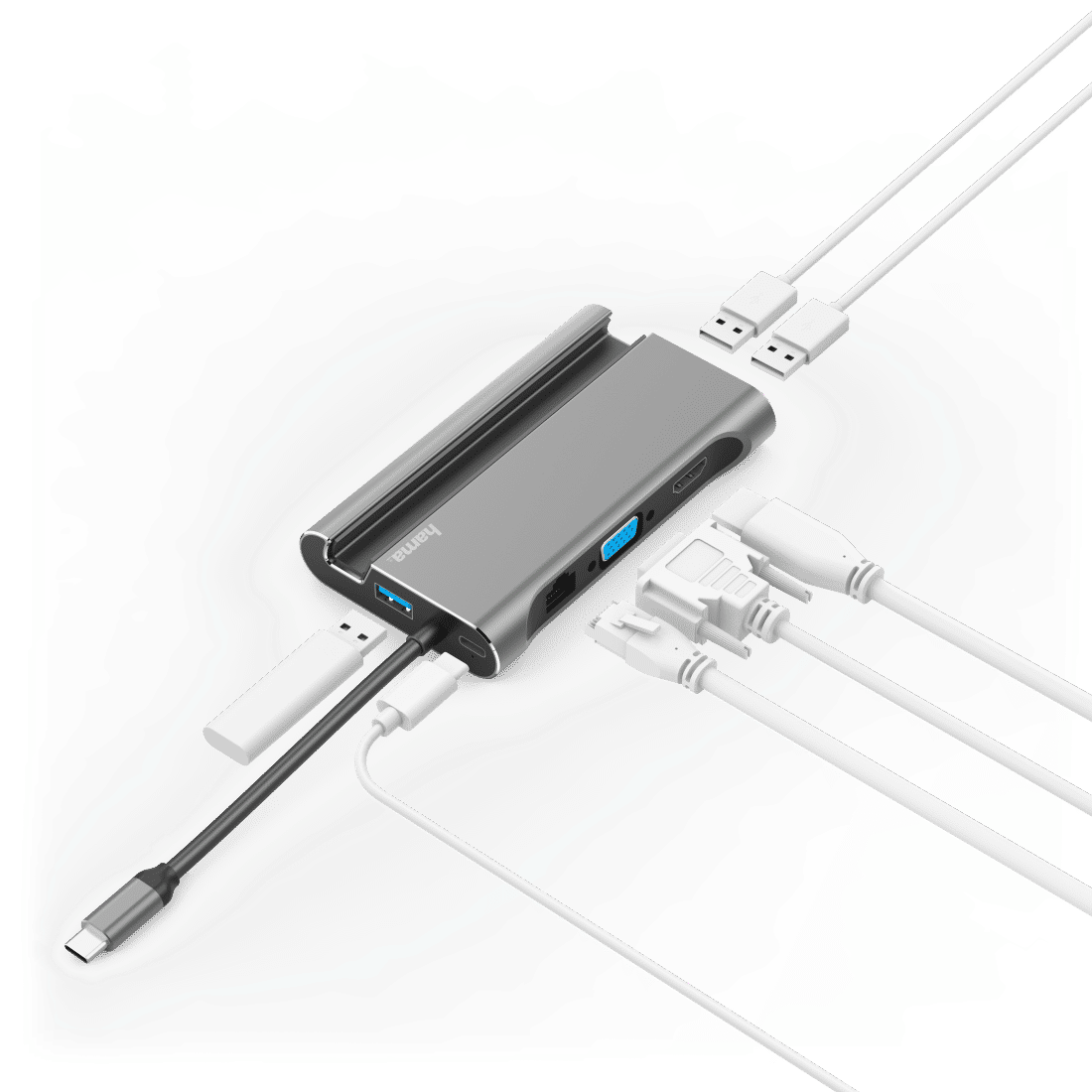 Slots on tablets, notebooks and PCs are mostly in short supply. Our USB- C docking station , on the other hand, provides an abundance of connections : Be it a projector, network, monitor or mouse and keyboard - connect seven in one go. Super speed transmission included!