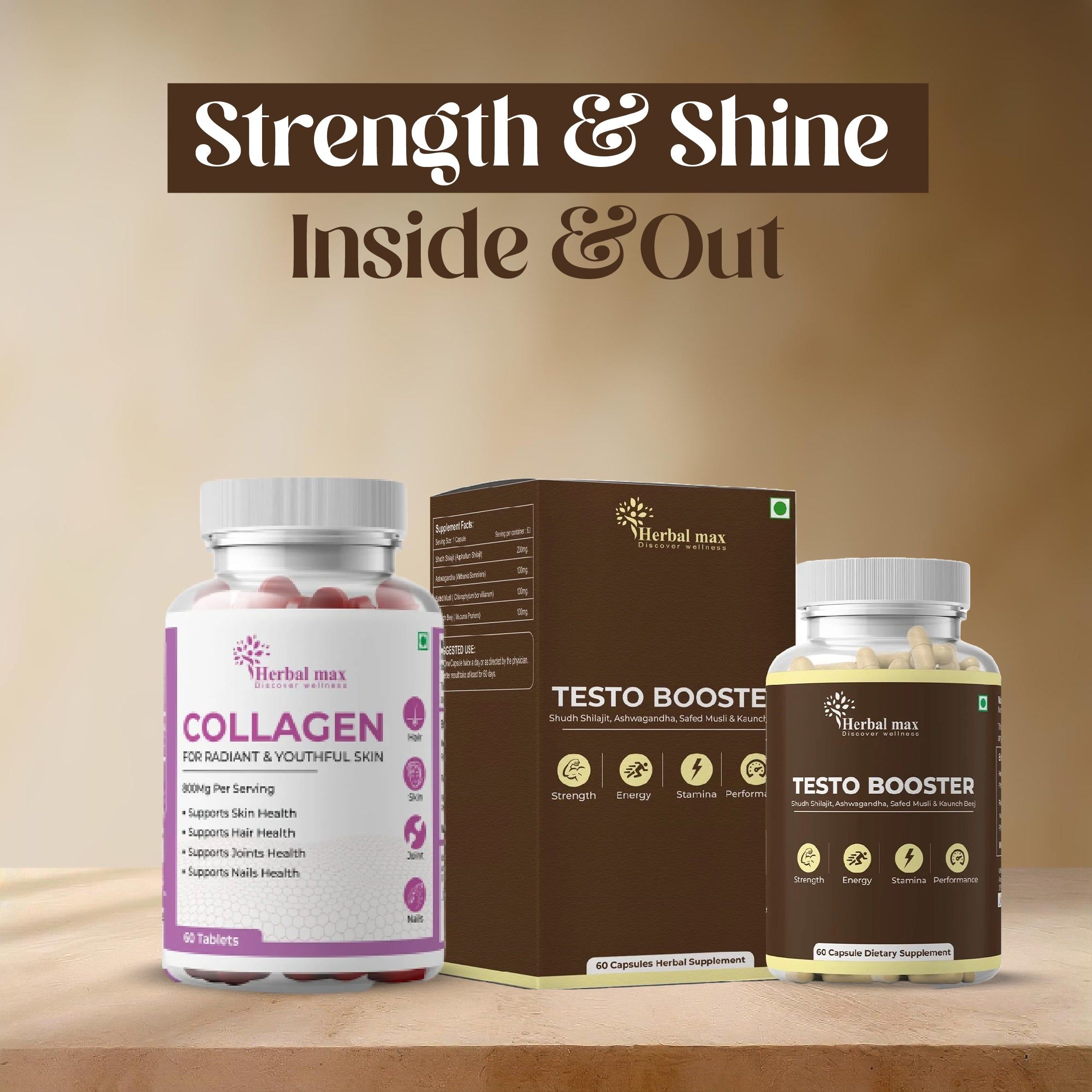 High-Quality Source: Our collagen supplement is made from high-quality, grass-fed bovine collagen, ensuring that you are getting a pure and potent source of this important protein. Increase Testosterone Levels: Our testo booster is specially formulated to help increase your body's natural testosterone levels, promoting muscle growth, increased energy, and improved stamina.