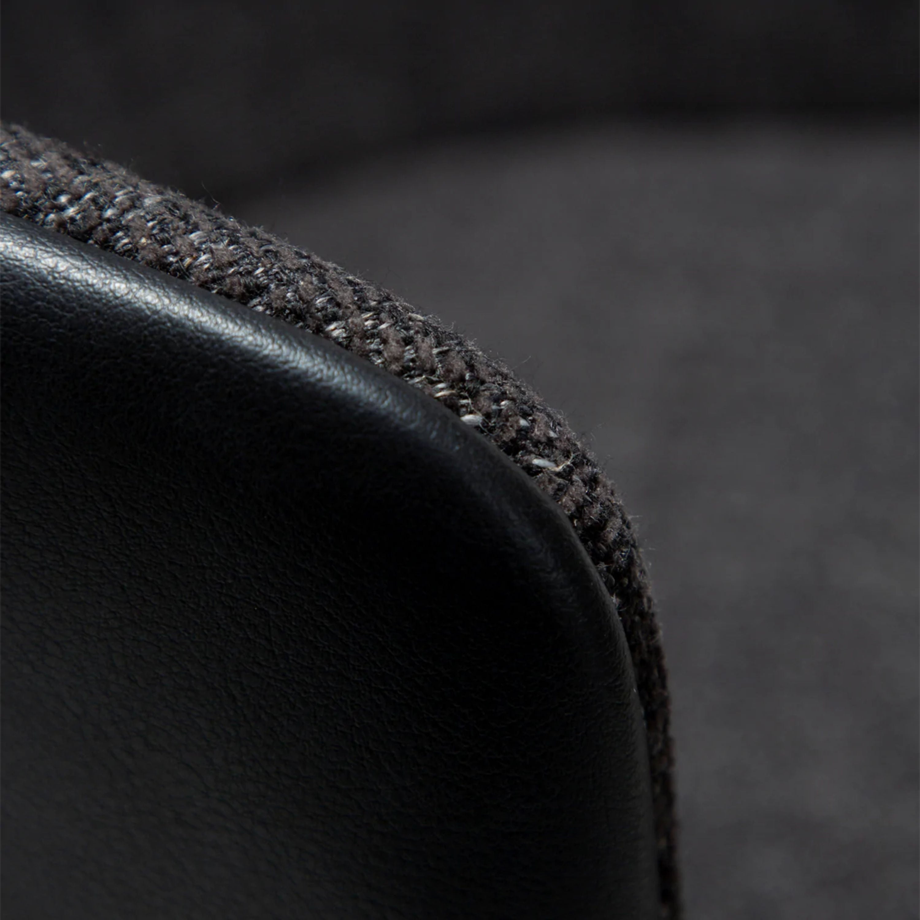 The Hey chair showcases Raven black boucle with faux leather creating sophisticated mixed-material appeal. The textured boucle pairs with smooth leather accents for dimensional interest while black metal legs complete the contemporary styling. Perfect for modern spaces seeking dramatic black sophistication with texture variety.