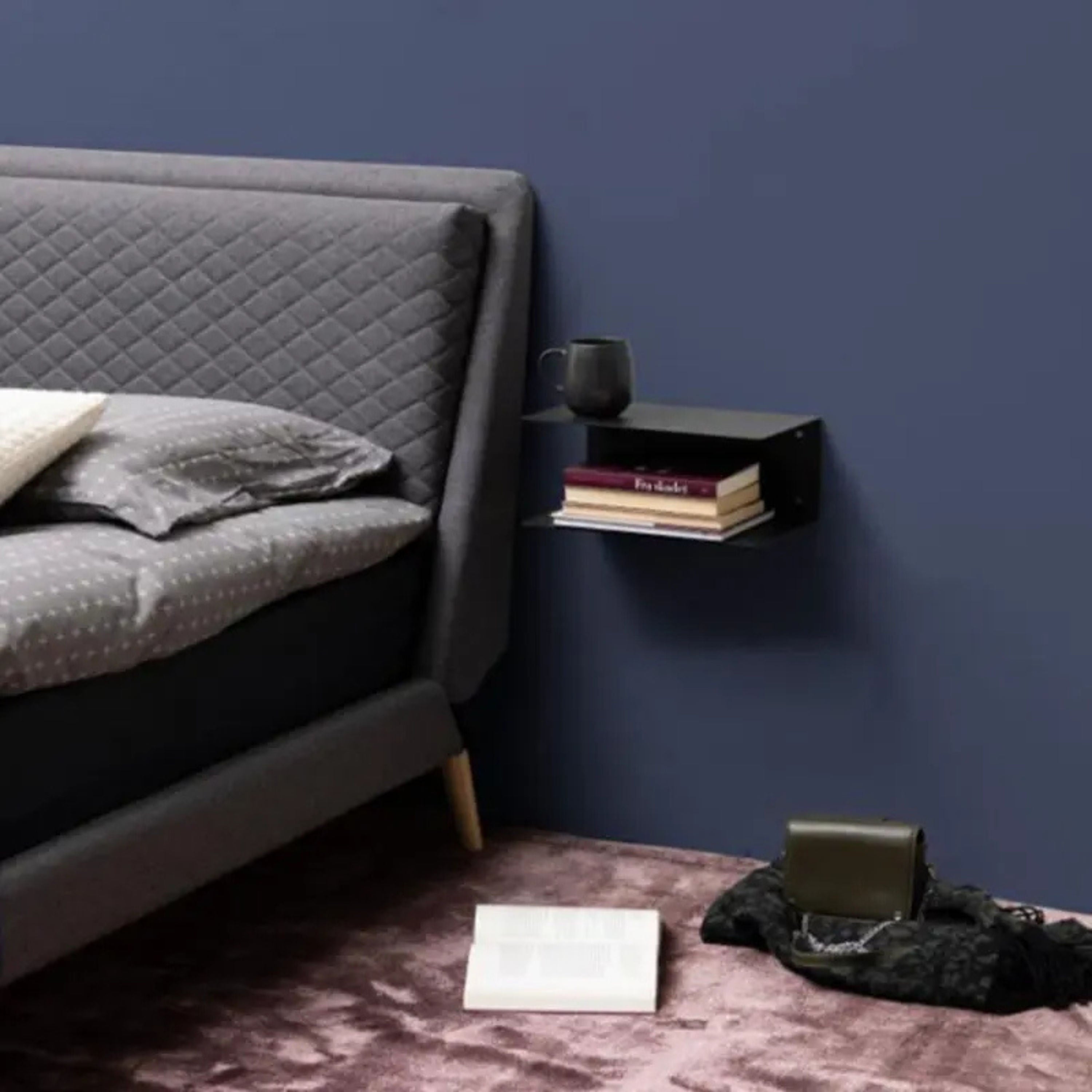 The Joliet wall shelf in Matte black metal brings minimalist storage with industrial appeal. This compact shelf offers simple, effective wall organization.