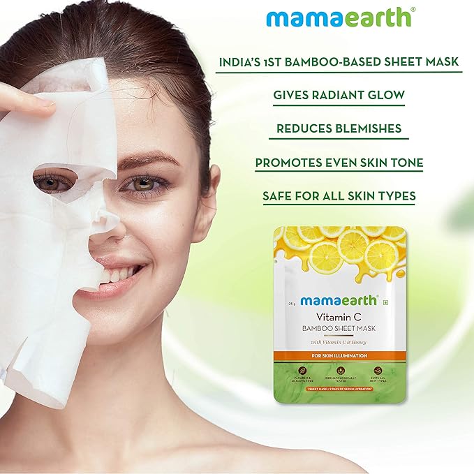 Mamaearth Vitamin C Bamboo Sheet Mask with Vitamin C & Honey for Skin Illumination, Dryness - 25 g