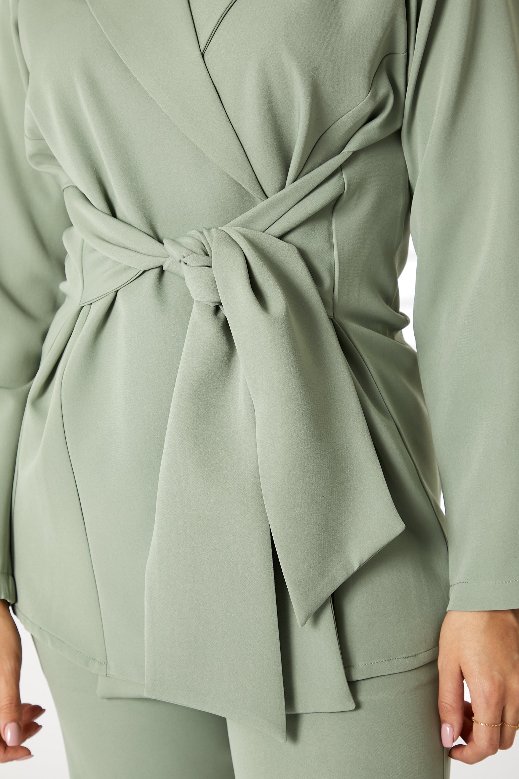 MOiSTREET Grey Barbie Crepe Fabric Blazer and Pants Set