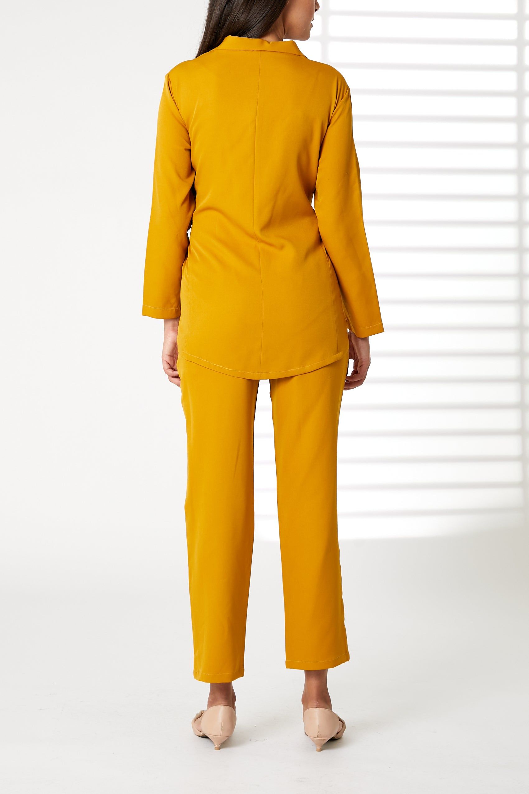 MOiSTREET Yellow Barbie Crepe Fabric Blazer and Pants Set