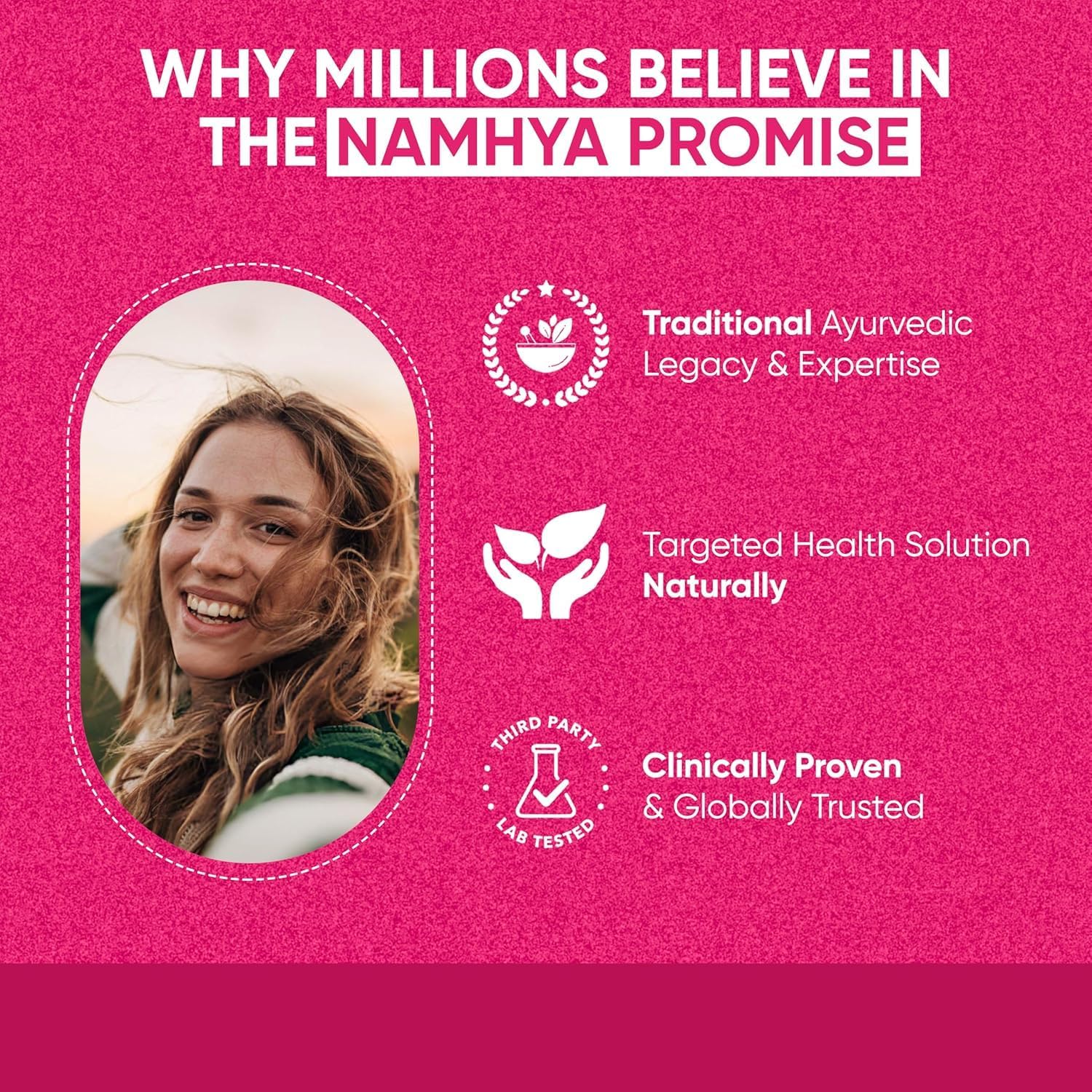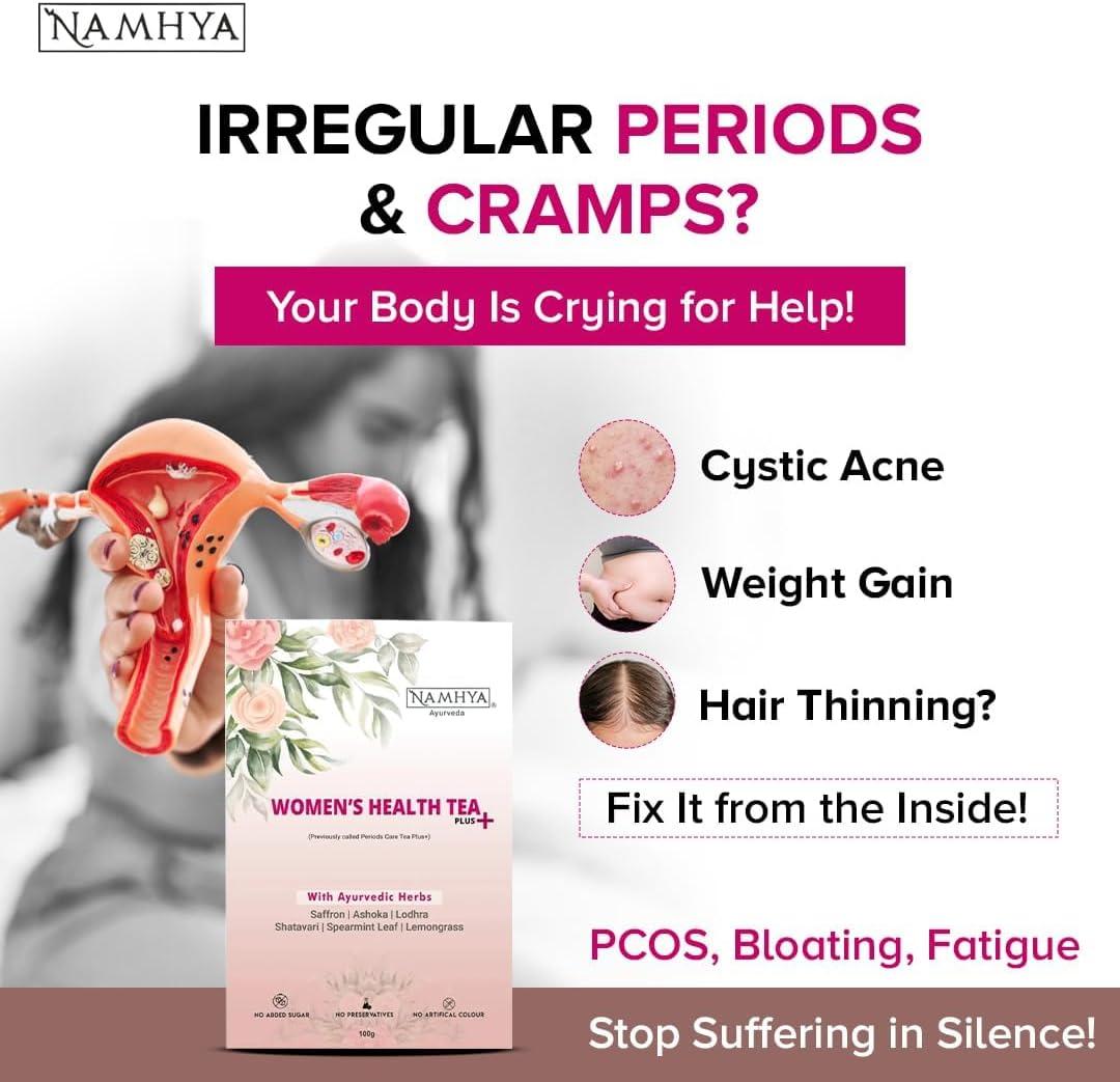 Namhya Women’s Health Tea is a natural, Ayurvedic herbal tea blend formulated to support women’s reproductive and hormonal health. It helps regulate menstrual cycles, relieve menstrual discomfort, and manage symptoms associated with PCOS and hormonal imbalances.