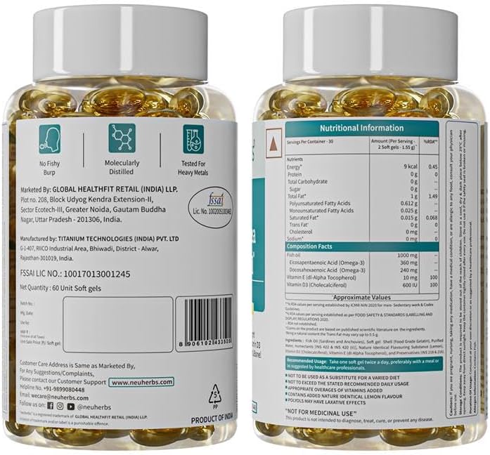 Neuherbs Mini Deep Sea Fish Oil Omega 3 Capsule 1000Mg- 60 Softgels