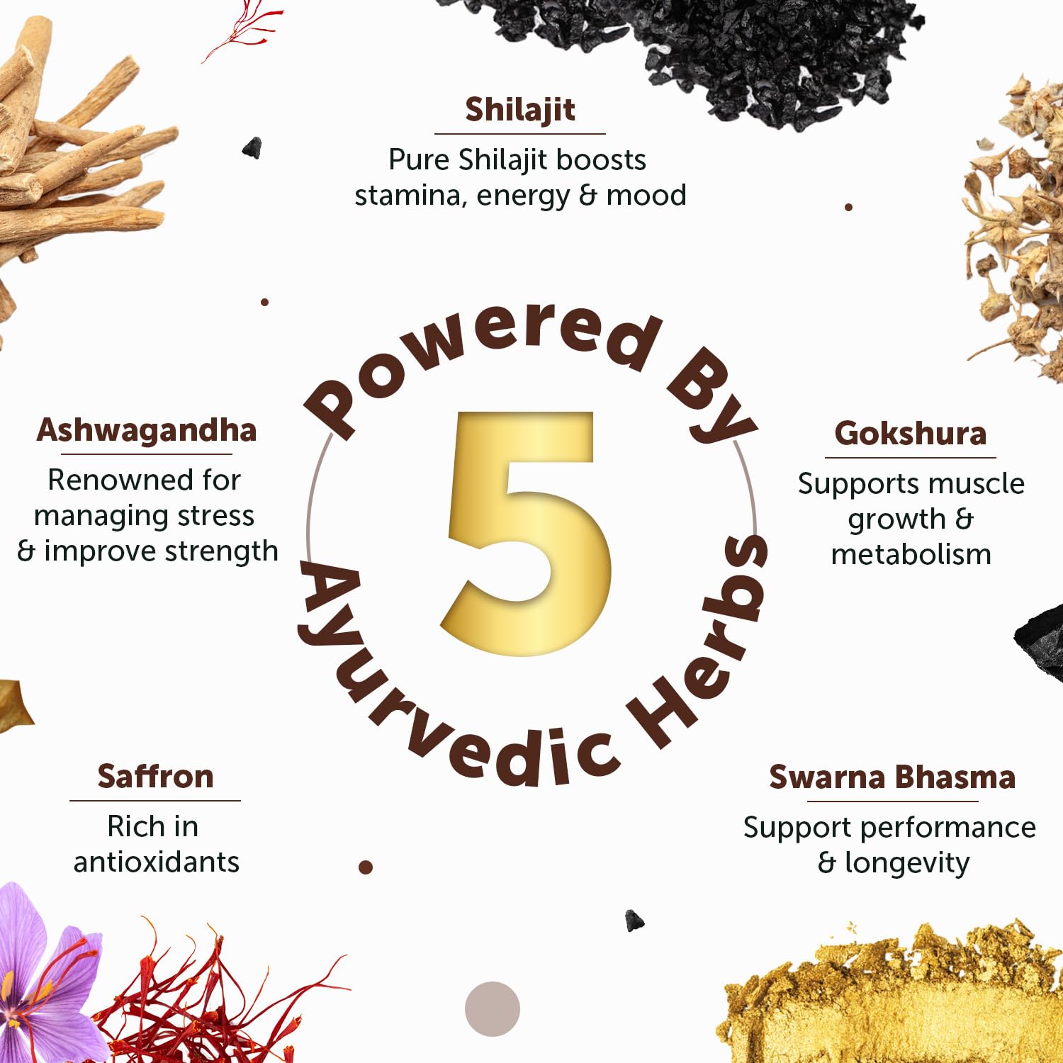 Neuherbs Shilajit Gold Ultra Resin is a premium Ayurvedic supplement designed to enhance male vitality, stamina, and overall well-being. This formulation combines 6 potent herbal ingredients, including Shilajit, Ashwagandha, and Swarna Bhasma, to support physical performance and hormonal balance.