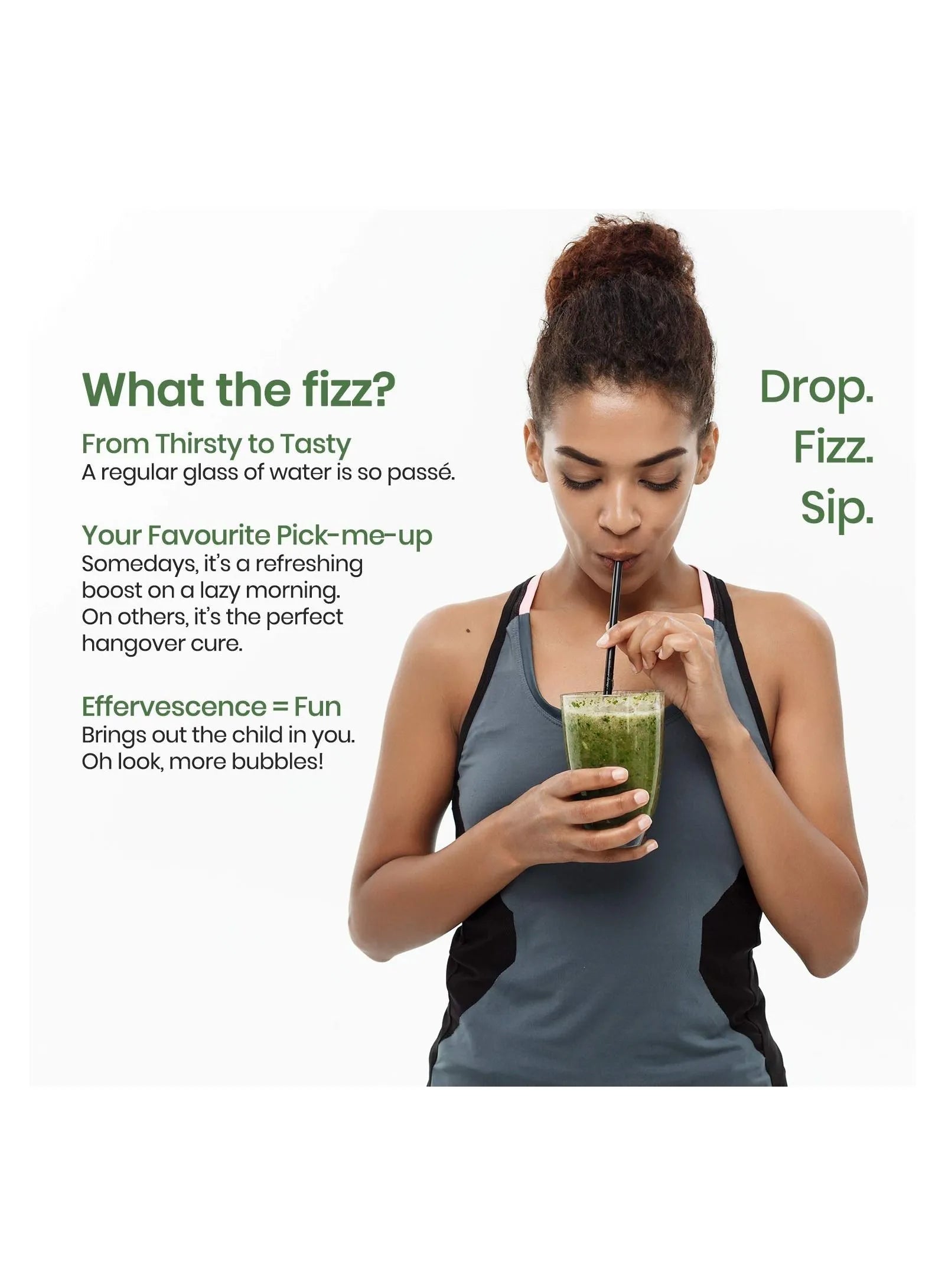 Drop one tablet into a glass of water, let it fizz, and then sip and enjoy.