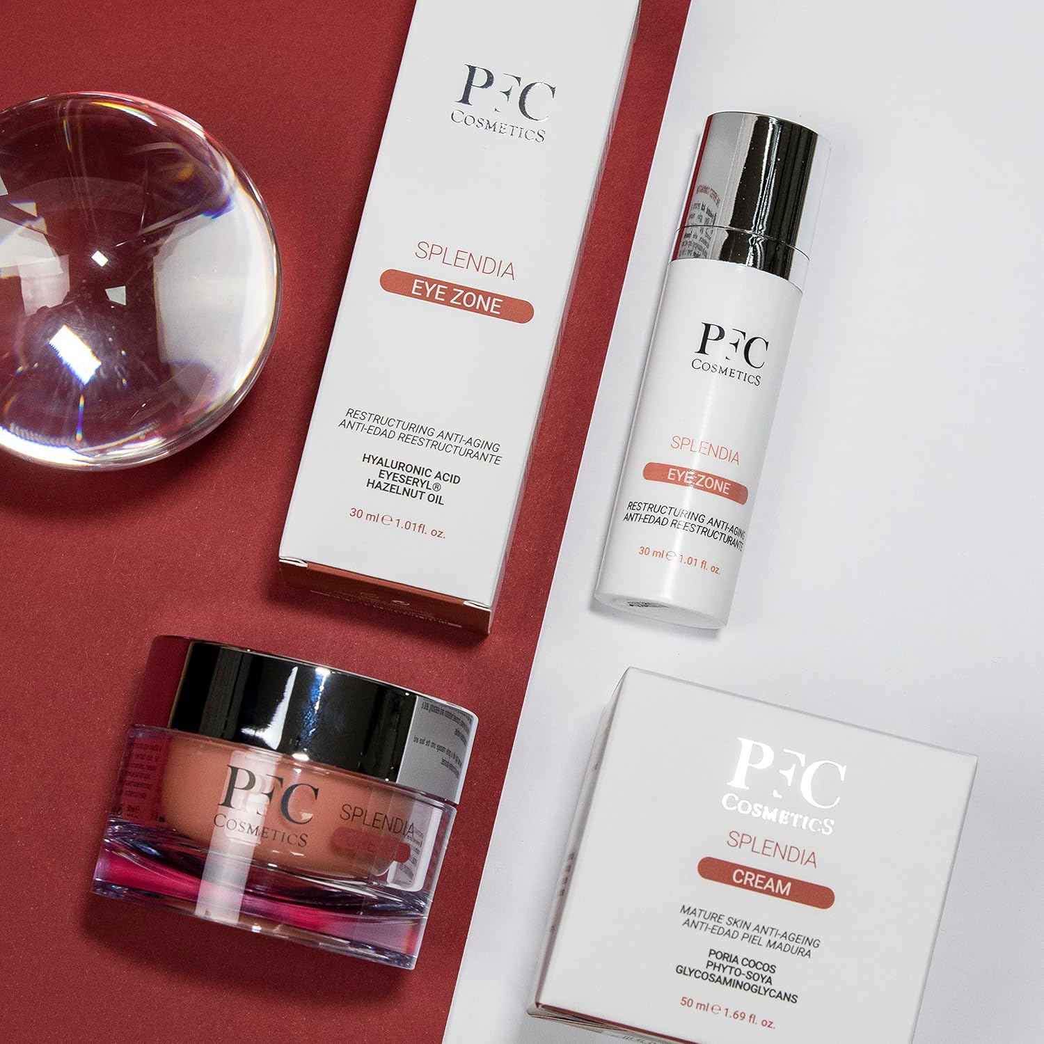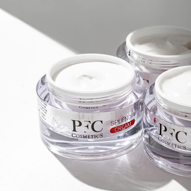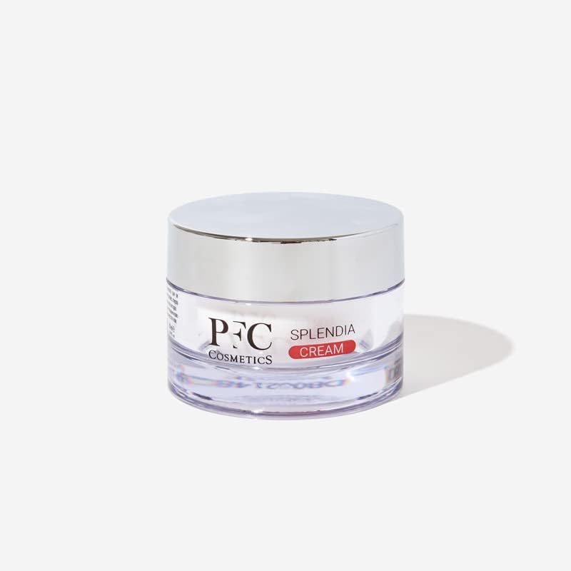 Results based on the effectiveness of cosmetic ingredients: Splendia Cream increases skin thickness by 8.15%, reduces wrinkles by 40% and reduces wrinkles depth by 30%. This product improves skin hydration and elasticity. Box contents: 50 ml pot. PFC Laboratory Manufacturer.