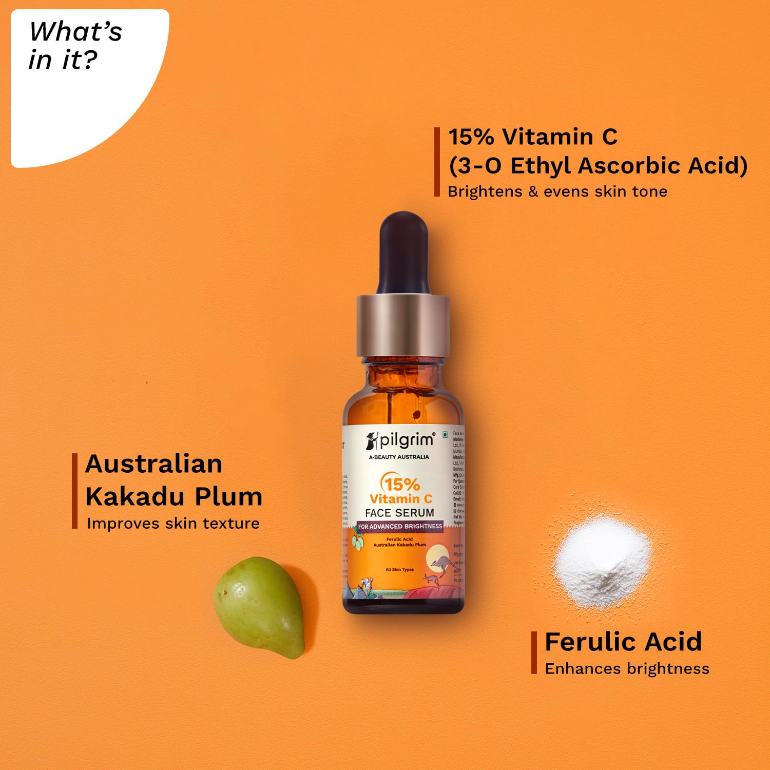 • Pilgrim 15% Vitamin C Face Serum For Glowing Skin 20ml