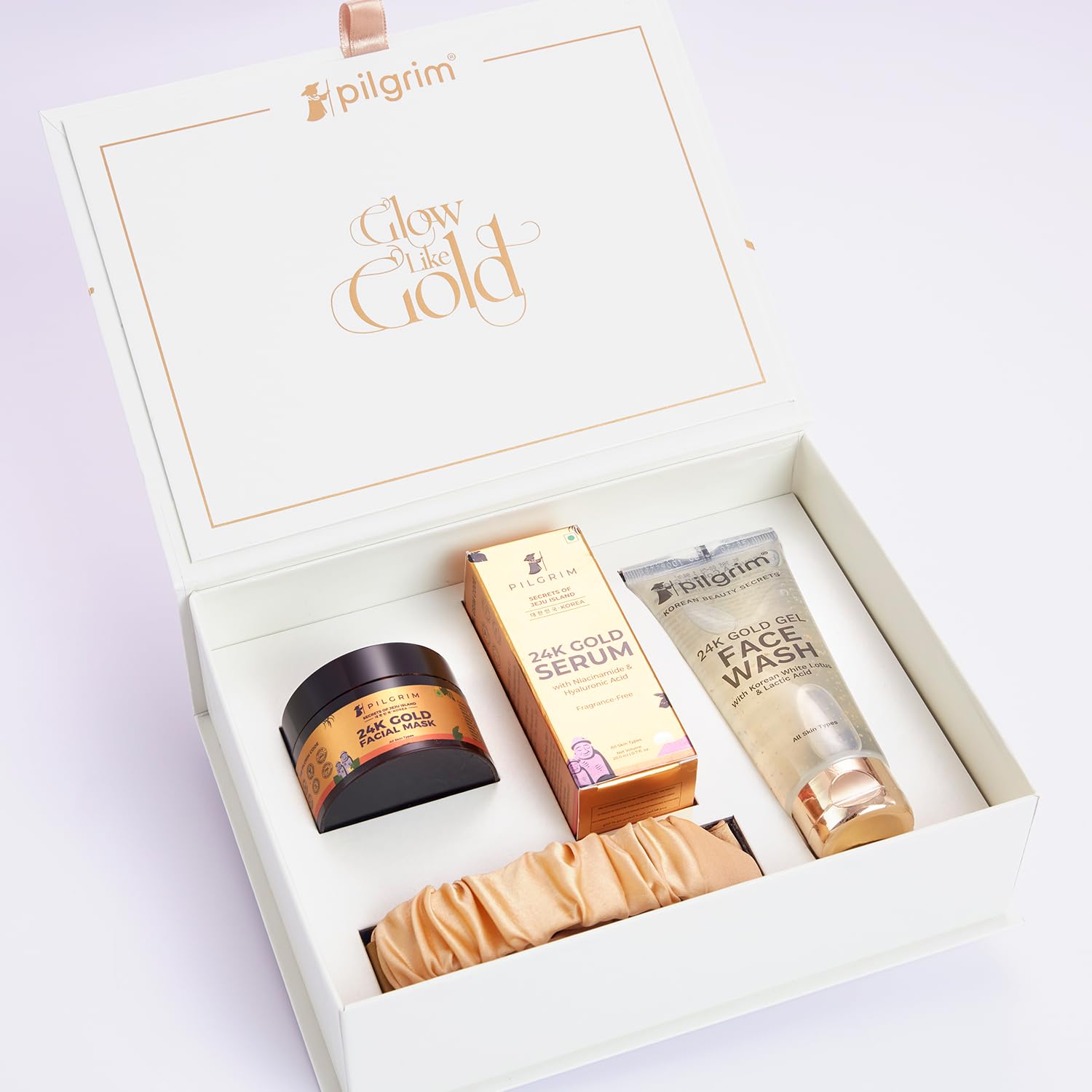Pilgrim 24K GOLD FACIAL KIT For Instant Radiance & Golden Glow with 5 easy steps