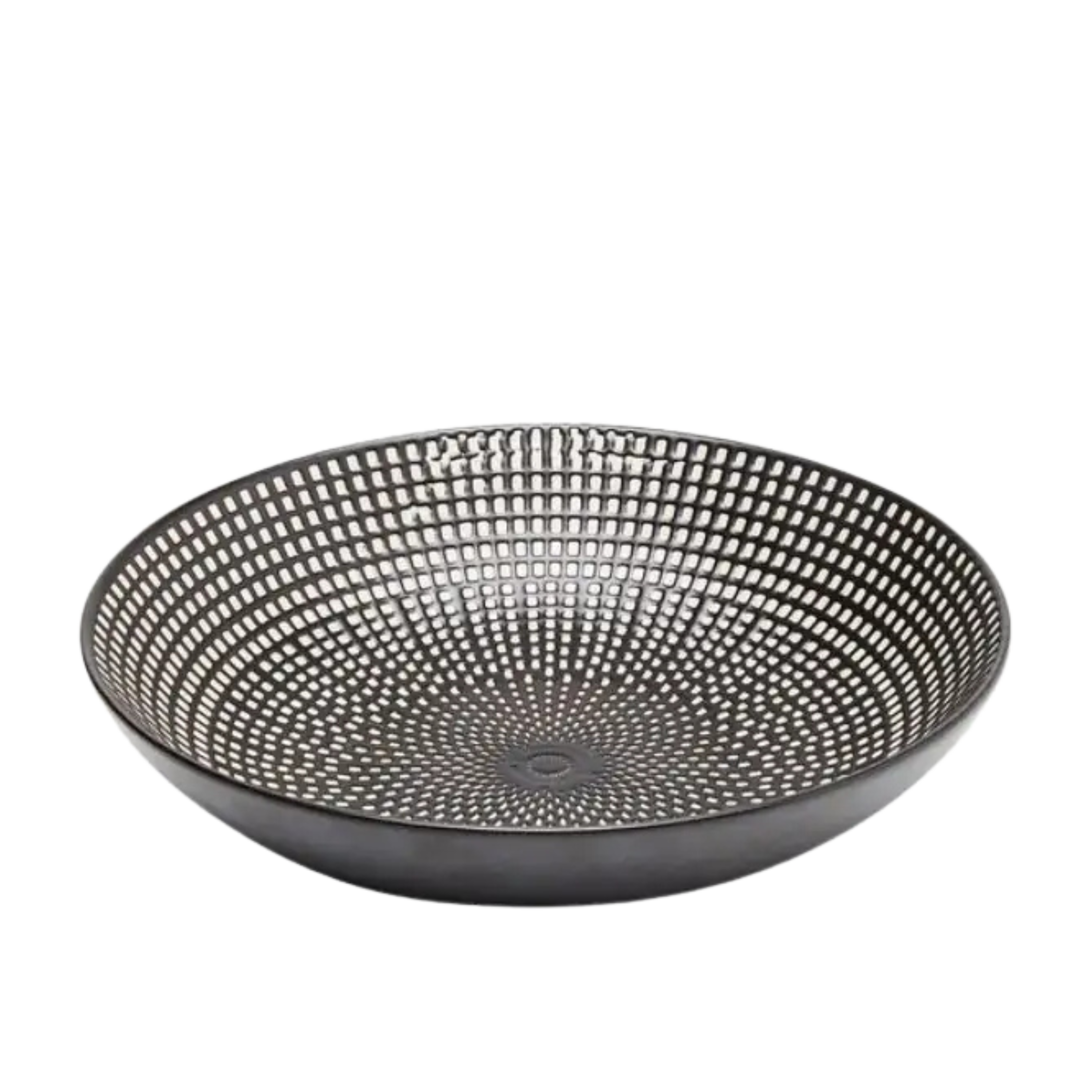 The Tokyo deep plate brings mysterious elegance perfect for pasta, soups, or stews with 700ml capacity. The black porcelain with ethnic pattern creates sophisticated presence combining exquisite design with practical convenience from KARE.