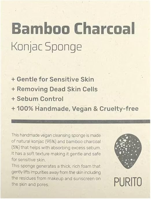The PURITO Bamboo Charcoal Konjac Sponge is a natural cleansing tool made from konjac root fibers infused with bamboo charcoal. Designed to gently exfoliate, unclog pores, and purify the skin, it leaves your complexion fresh, smooth, and balanced. Perfect for daily cleansing without irritation.