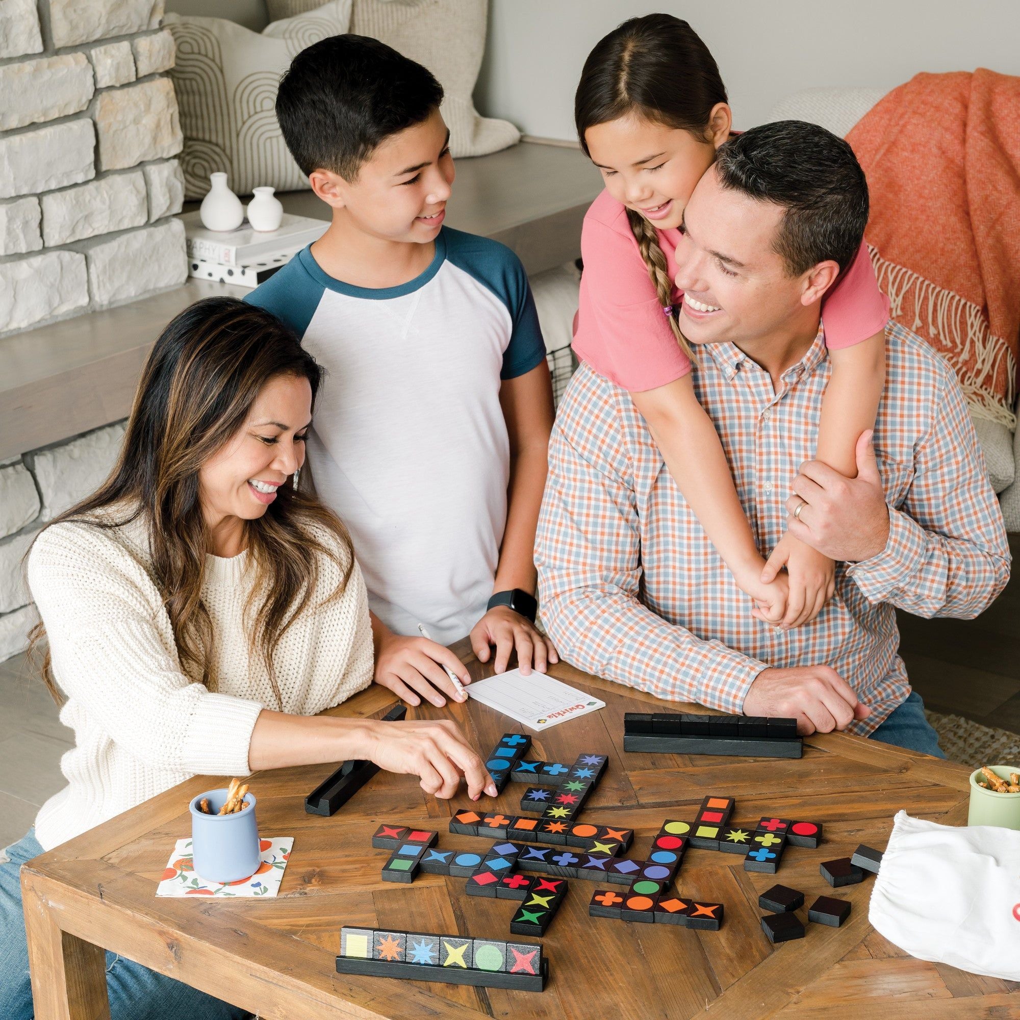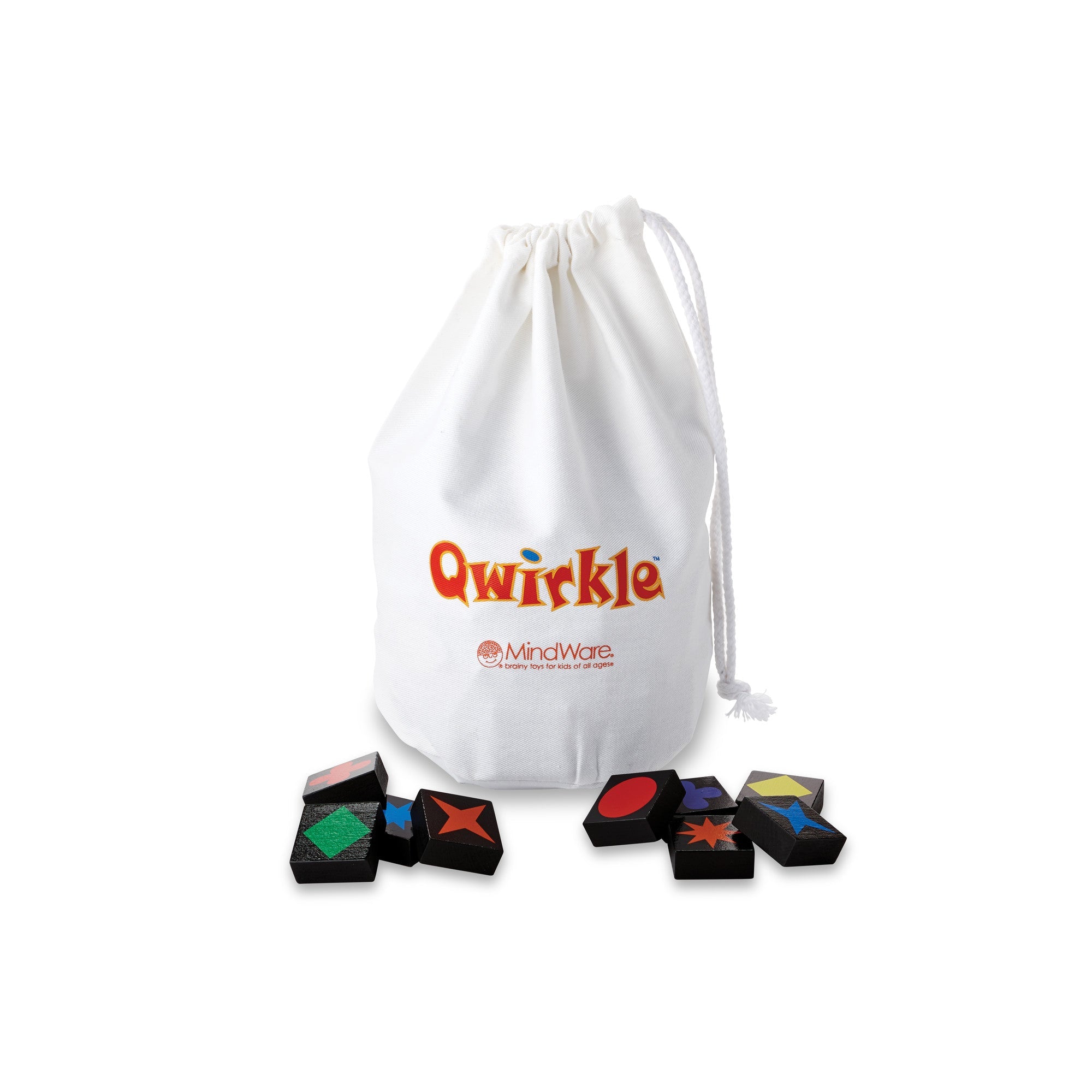Mix, match, score and win! Qwirkle™ is a must-have for your next family game night. MindWare's best seller is a simple game of matching colors and shapes that requires tactical maneuvers, quick-thinking and a well-planned strategy. Players of this addictive game score points by building rows and columns of brightly-colored tiles that are either all the same color or all the same shape, without creating duplicates. Look for opportunities to score big by placing a tile that touches multiple pieces with matching attributes; create a line of all six in a row, and you score a "Qwirkle".