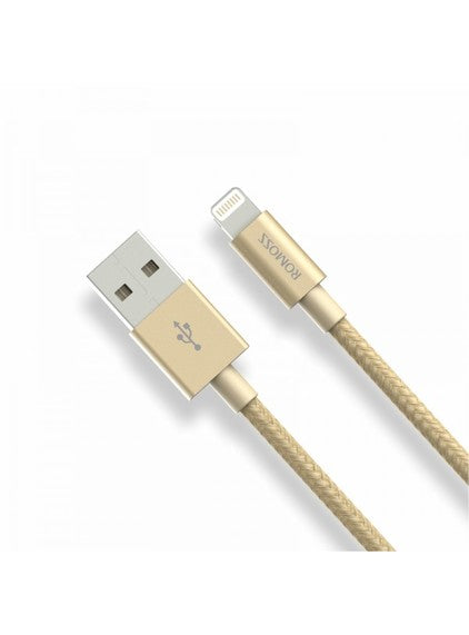 ROMOSS CB13N Nylon Braided USB MFI Lightning Cable 1M - Gold High Speed Charge