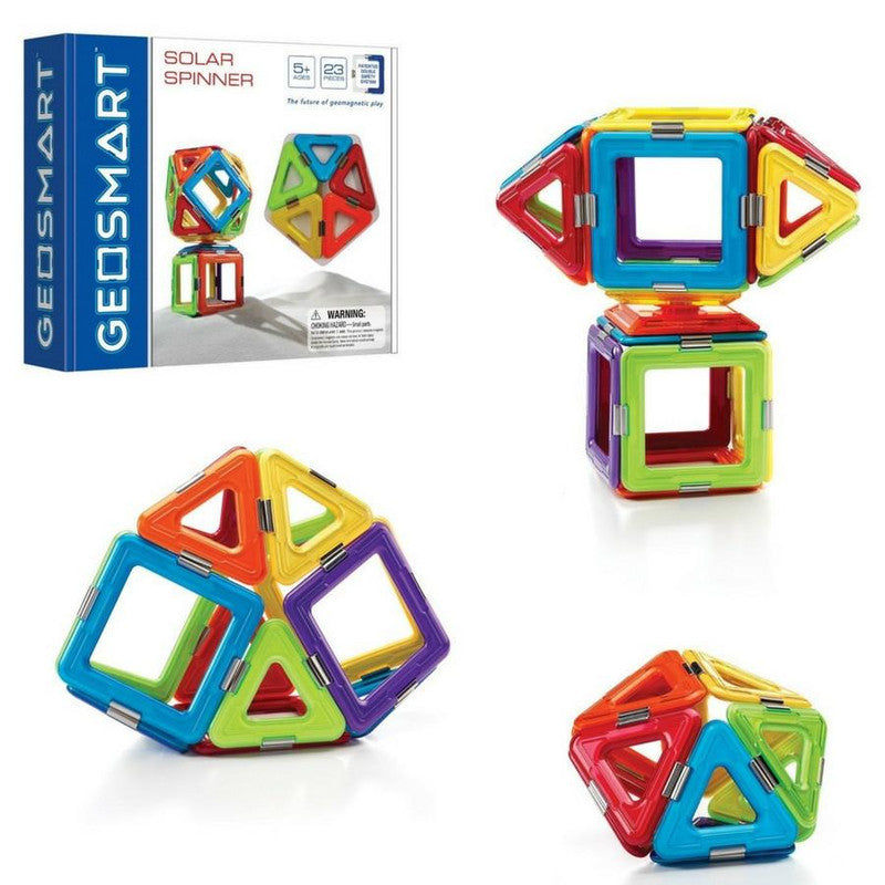 Use the squares and triangles to build your own solar creation and watch it spin! GeoSmart Solar Spinner includes 23 strong and brightly coloured geometric pieces, with a spinner to bring life to children’s creations.