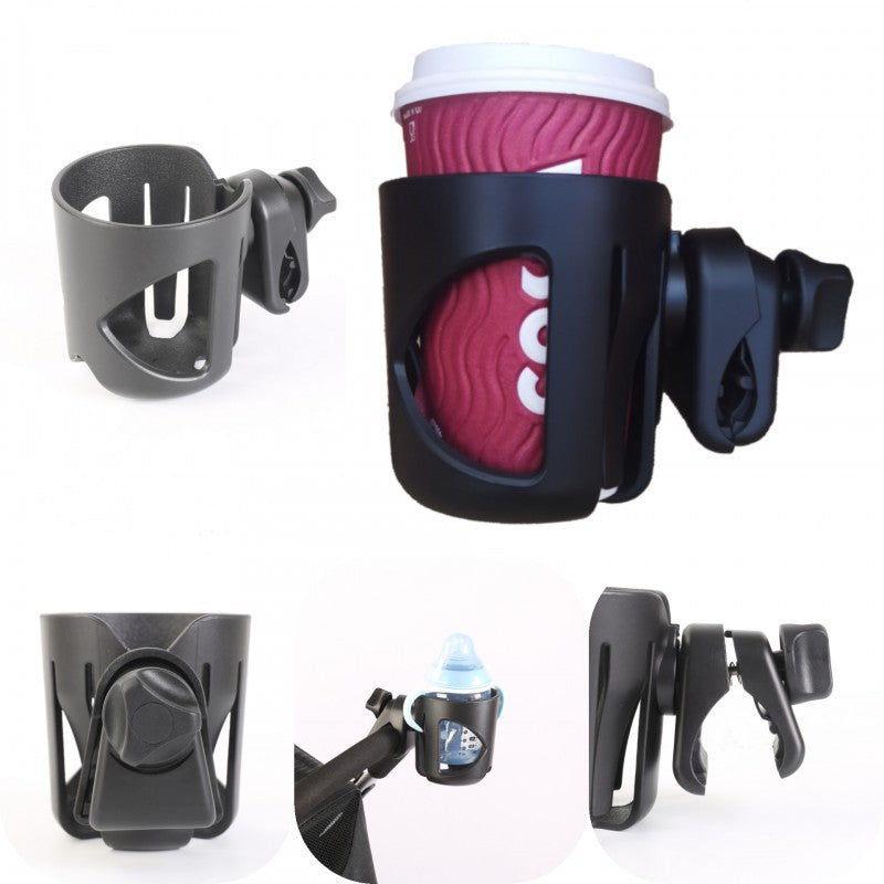 The flexible stroller cup holder works for both walkers. While you're moving around, it keeps your drinks in place with its close fit and gripping arms.
