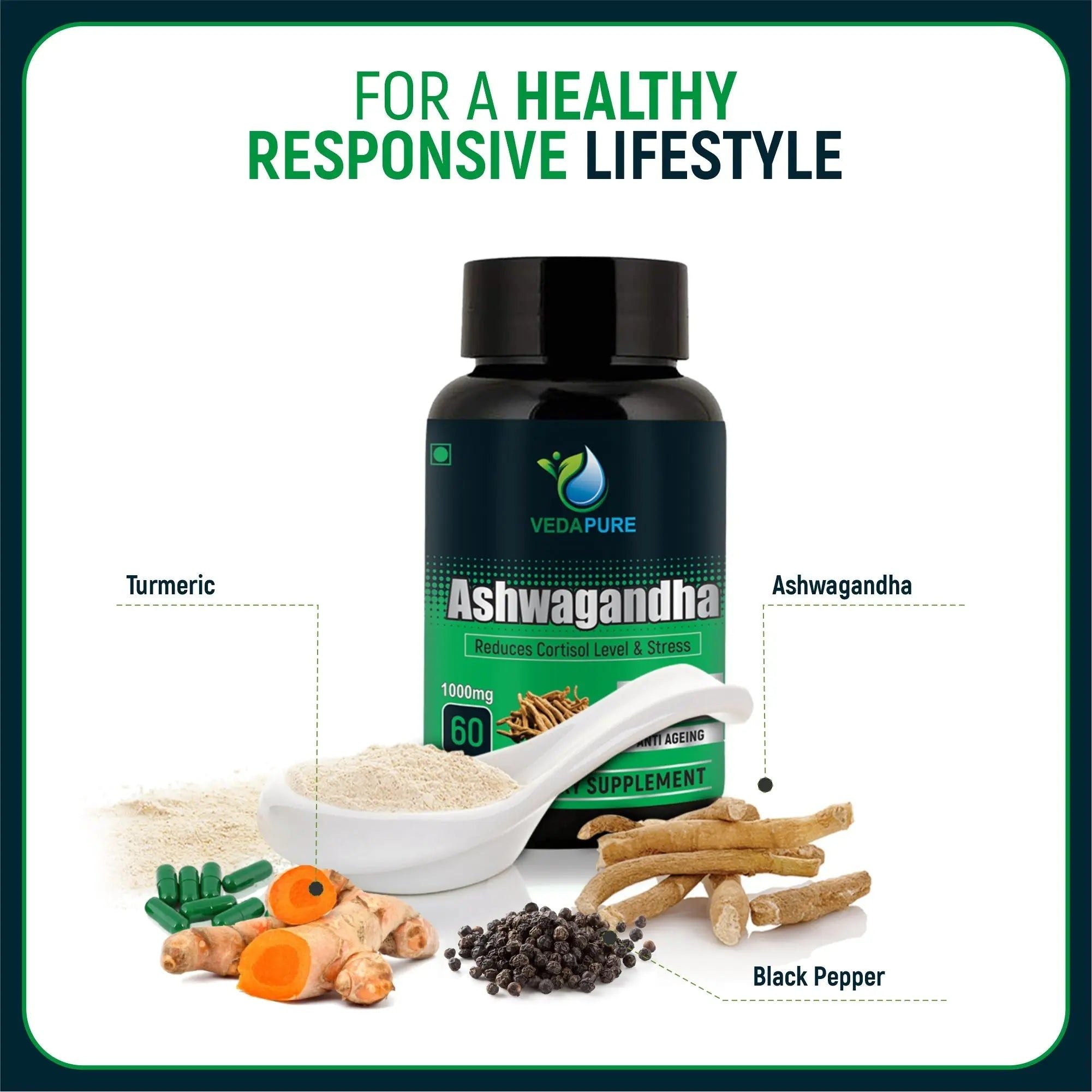 Vedapure Raw Ashwagandha is a herbal supplement for joint and muscle pain. The purity is reflected in its making, from all-natural raw ashwagandha and with ania somnifera. Your prolonged muscle pain will vanish just like some magic spell. Vedapure Raw Ashwagandha is so effective in sports nutrition and medicinal purposes. Your immune system provides excellent strength and stamina. It also works wonderfully in stress relief, anti-anxiety and chronic fatigue with great support. Research has proved that it is an antioxidant, and immune booster. Ashwagandha not only improves your stamina level but also uplifts your mood. It may even double your physical metabolic rate and increases athletic performance. Each Vedapure Raw Ashwagandha capsule is naturally made and is free from any kind of artificial preservatives or ingredients, and is ultimately suitable for vegetarians and vegans. We use no binders and it is completely zero filler.