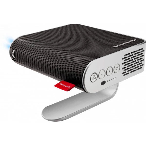 The ViewSonic M1+_G2 is an iF award-winning, ultra-portable LED projector that can deliver a convenient, enjoyable entertainment experience anywhere it goes. With a built-in battery, a LED light source with up to 30,000 hours of lifespan, all packaged into less than 1 kg, the M1+_G2 can deliver years of multimedia entertainment wherever it goes – from room to room, both inside and outdoors. Its smart stand enables simple 360-degree setup, while doubling as a lens cover. Once the lens is uncovered, the projector automatically powers on to full brightness for instant entertainment. Stereo Harman Kardon speakers provide room-filling sound for an amplified experience, while more flexible audio needs can be realized via Bluetooth. Integrated Wi-Fi connectivity makes streaming easier than ever – both wireless casting from smart devices and built-in content streaming are possible.