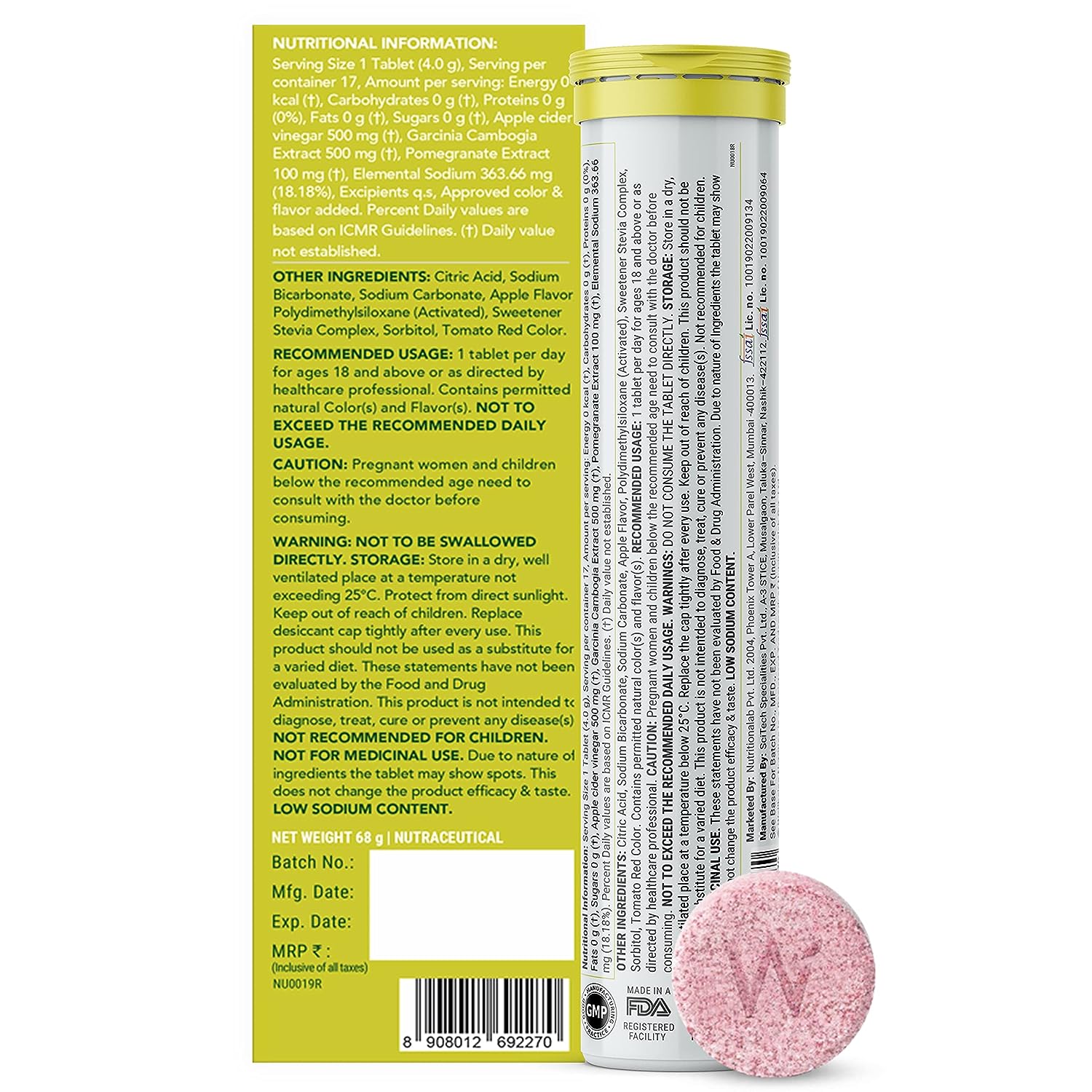 Wellbeing Nutrition Apple Cider Vinegar (ACV) 34 Effervescent Tablets with the Mother and Garcinia Cambogia, Pomegranate
