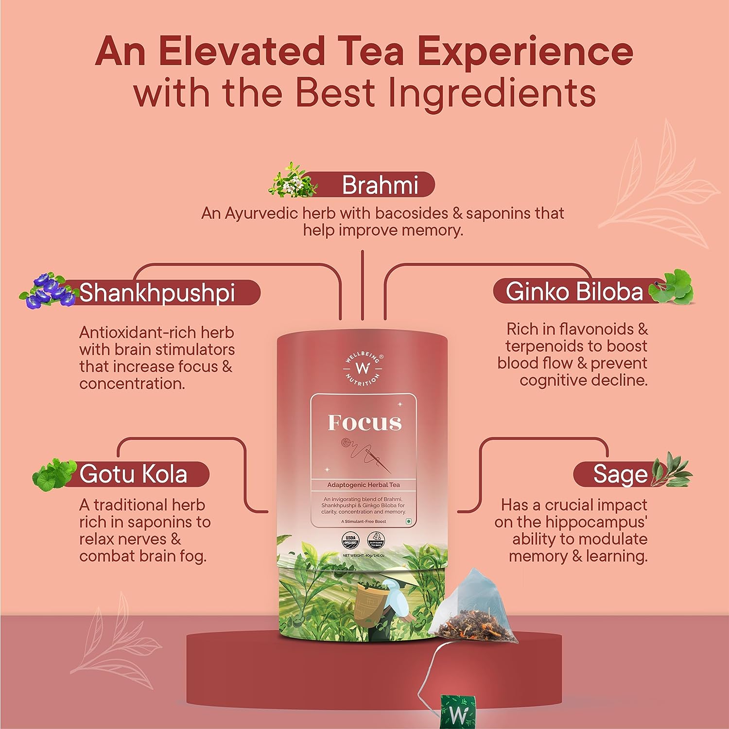 Wellbeing Nutrition Focus Tea (20 Pyramid Tea Bags)