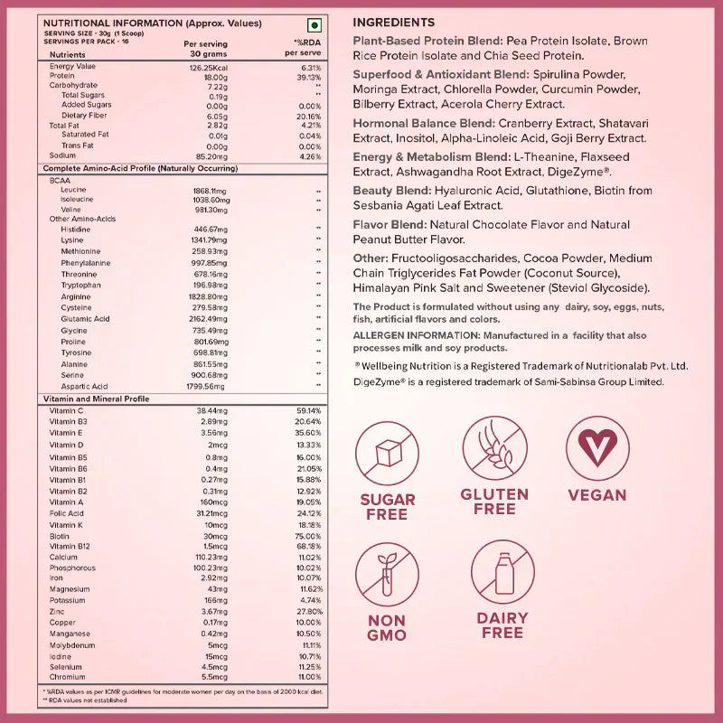 Wellbeing Nutrition Organic Vegan Plant Protein Powder Superfoods Fiber For Muscle Growth & Recovery 500Gm Peanut Butter
