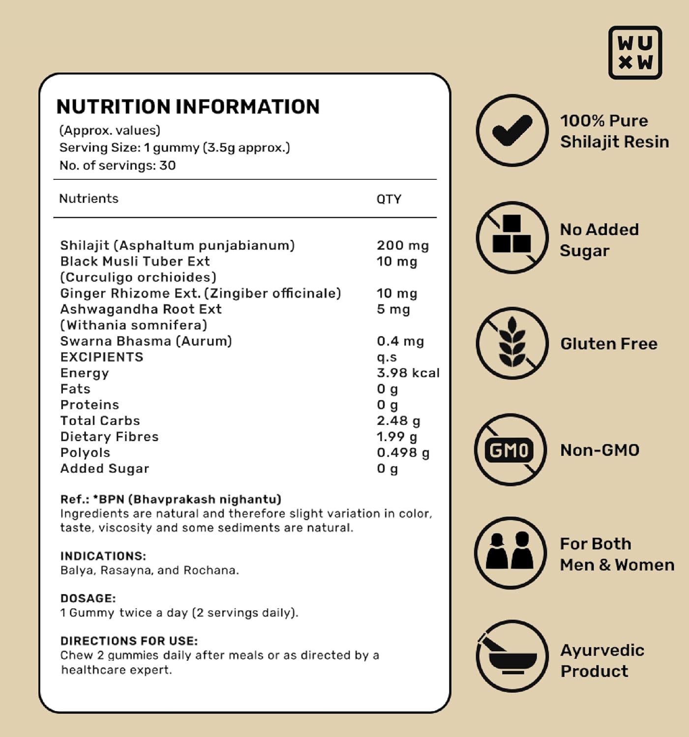 What’s Up Wellness ShilajIt Resin Gummies | 200 Mg Resin with 24 Carat Gold Dust | Imili Flavour 30