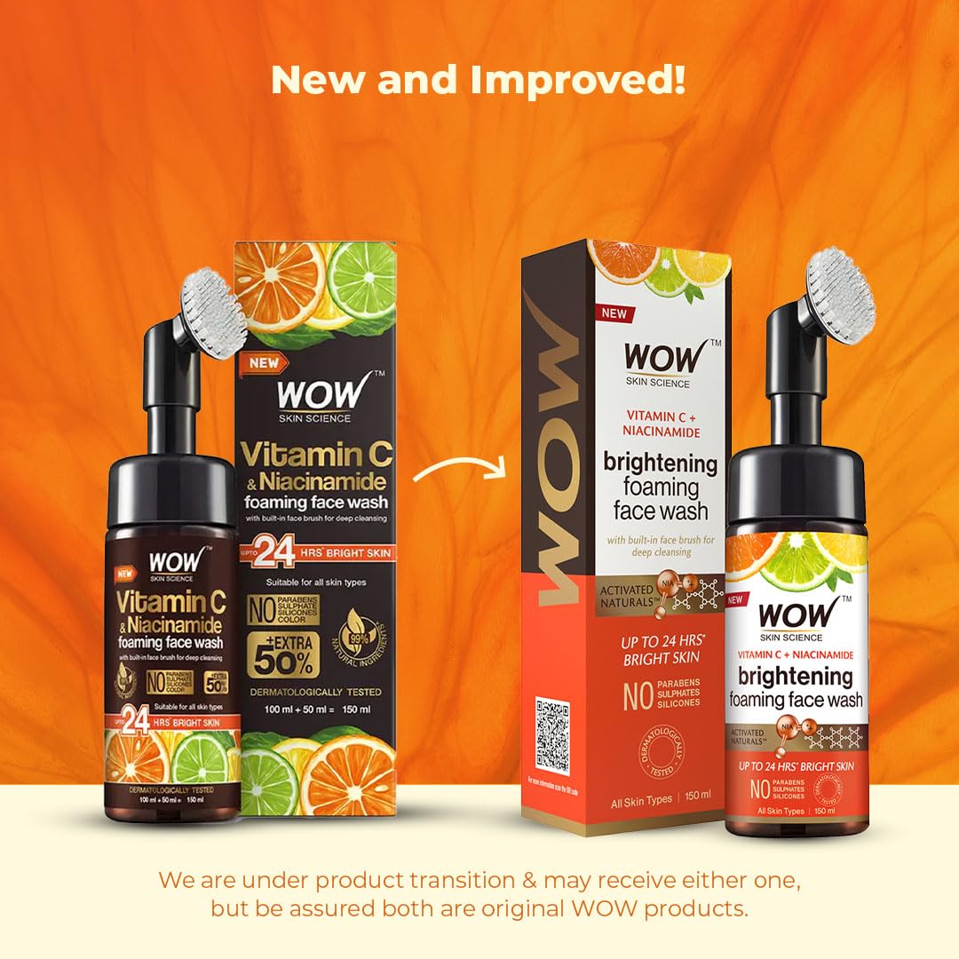 Wow Skin Science Brightening Vitamin C & Niacinamide Foaming Face Wash For Women & Men 150ml pack Of 2