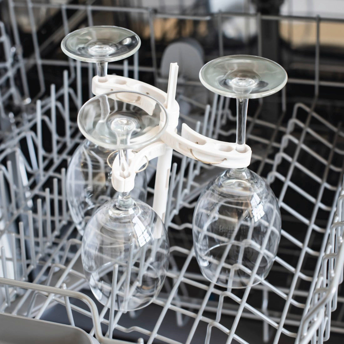 • Holding device for the dishwasher prevents sparkling wine, champagne or wine glasses from falling over, scraping and knocking together