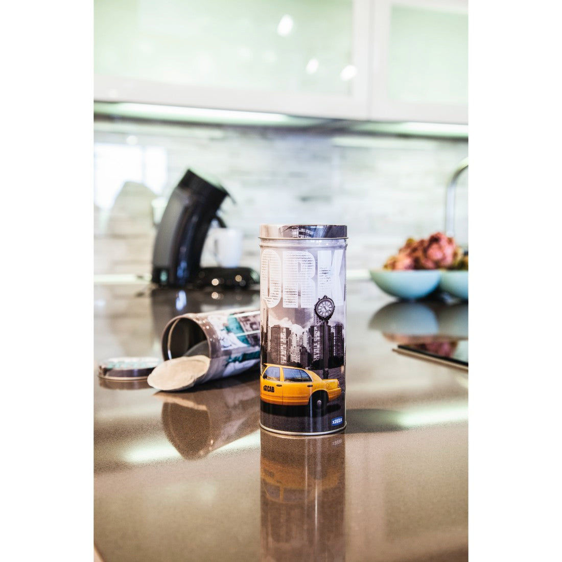 • Metal container for storing up to 18 tea or coffee pads and for keeping the aroma