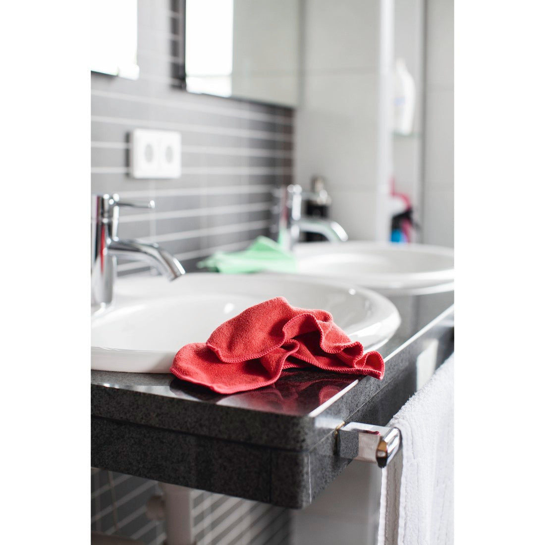• One extra cloth for every surface, with different textures for more hygiene (device surfaces - red/glass - blue/universal - yellow/kitchen - green)